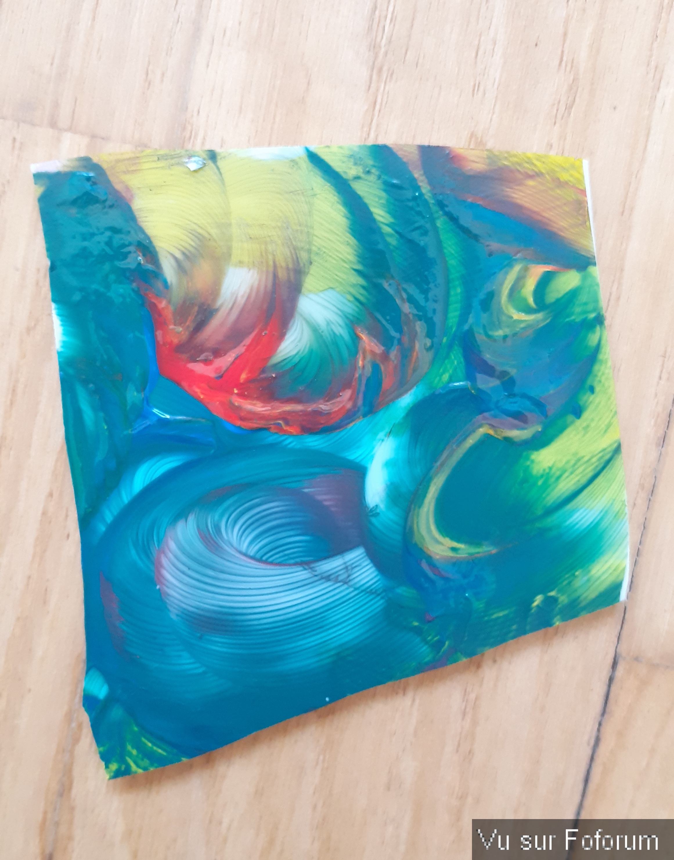 Pour l'anecdote, j'ai accidentellement cassé mon assiette de peinture en voulant la laver 😑 mais elle s'est cassé en laissant le milieu intact, et j'ai trouvé ça joli alors je vais garder ce morceau. On dirait qu'il y a un phénix 😅