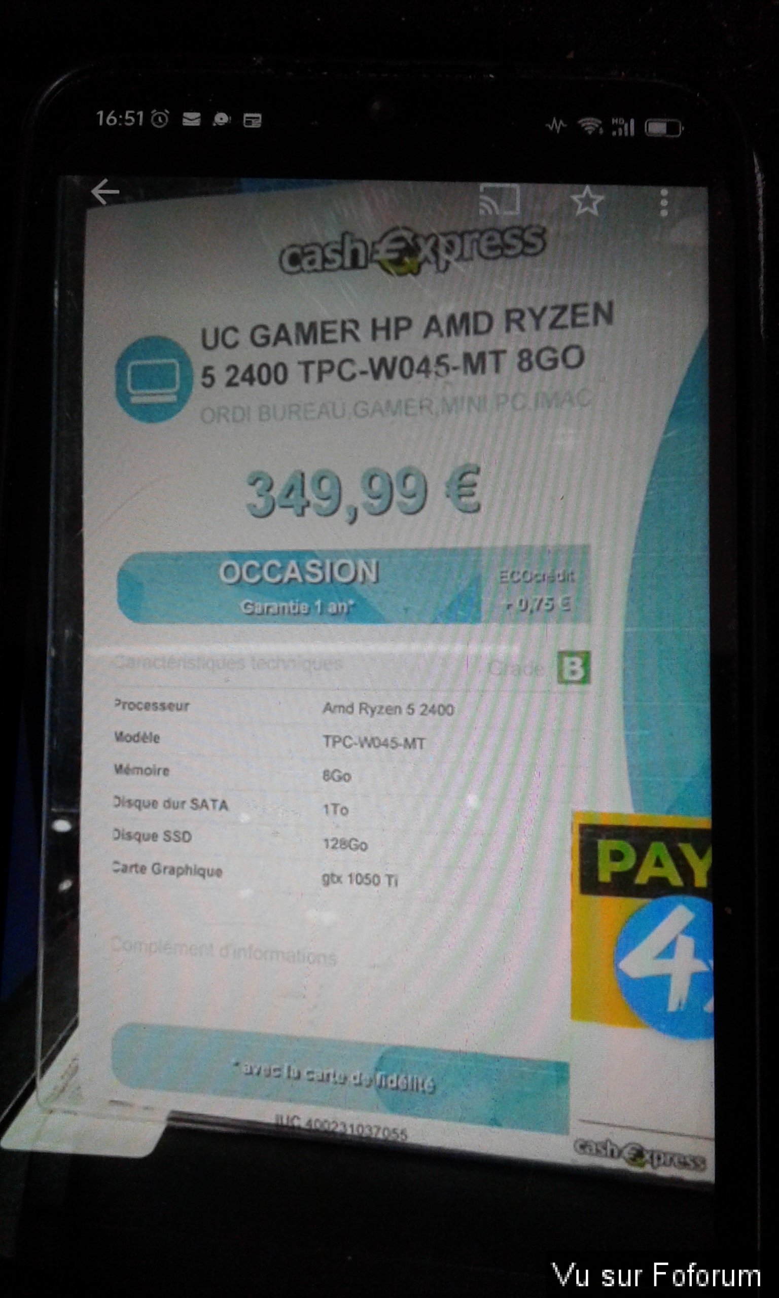 Là où tu as été JAMAIS je n'achèterai de pc chez eux !Je pense Avoir vue que le vendeur m'a prit pour une truffe