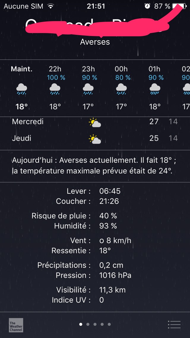 chez moi aussi il pleut mdrChez moi, il pleut et il y'a de l'orage... voilà ce que dit mon téléphone: Voir la pièce jointe 469