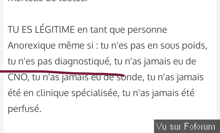 Bah hm non pas vraiment. Tu décribilises également les personnes qui ont des TCA dans une durée moins longue que 6 mois. Alors je suis d'accord, il faut être diagnosticé, mais justement sans diagnostic on ne peut pas non plus dire le contraire.