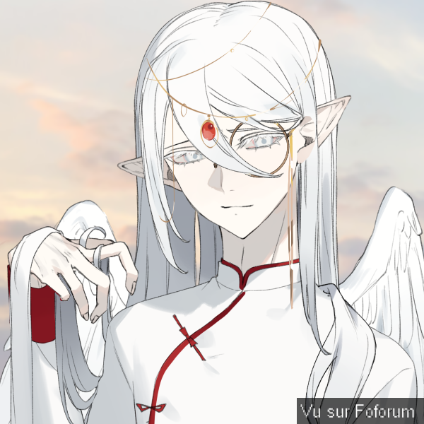 Notre nouvelle doyenne.Je suis saint.e Huriel un ange séraphin non-binaire j'ai ∞ ans. Mes cheveux sont longs comme ceux de Raiponce et tout blancs. Mes yeux sont tout blancs et ma peau aussi. Je porte un monocle doré car je suis presque aveugle de l'oeil gauche(merci Raphaël...) Je suis très innocent,naïf,sérieux et aussi chiant à mourir.