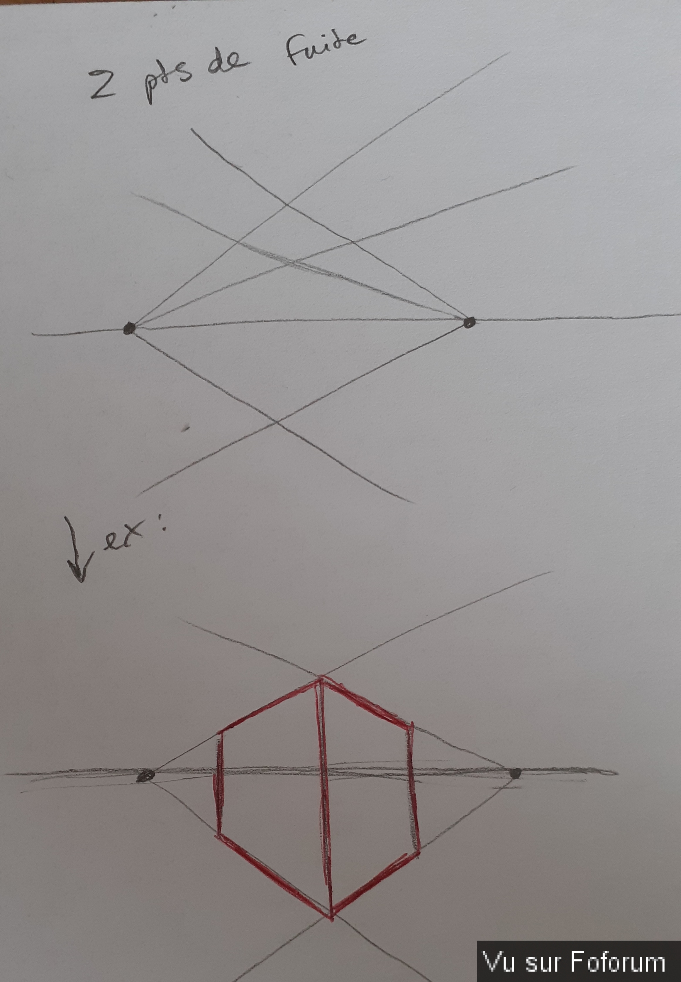 2 points de fuite tu as des diagonales et des verticales uniquement