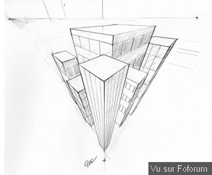 Et trois points de fuites du coup c'est pour les objets/ batiment ou autre, vu de haut.