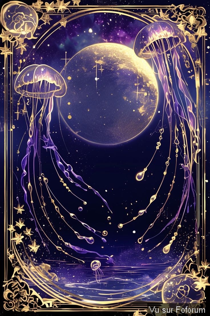 Très belle image en tous cas avec la lune qui représente la nuit, la féminité, l'intuition et les méduses qui apportent les reflets de lumière sur un fond cosmique, classe...
