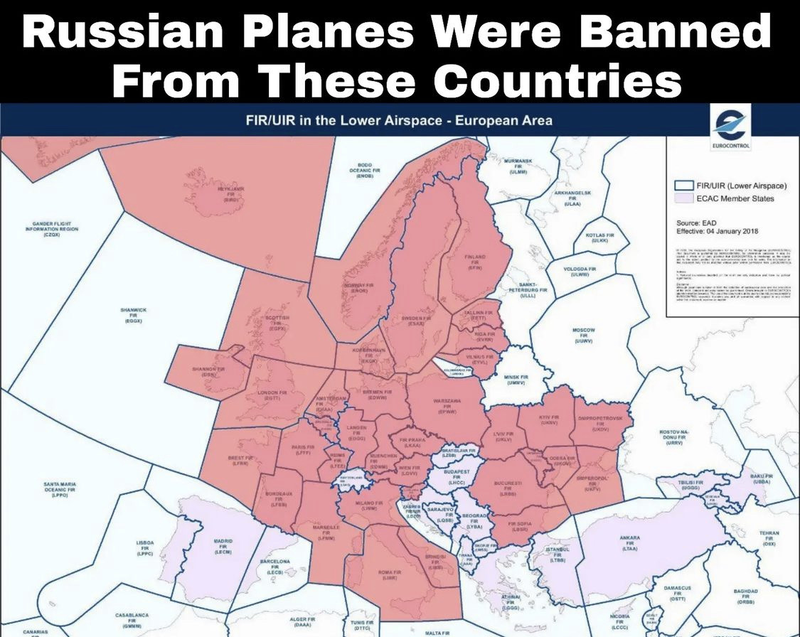 Mais pas de son propre pays ? Enfin bref, j'ai vite regardé une carte avec les espaces aériens bouclé aux russes en Europe. C'est marrant que sur beaucoup de carte, la Suisse soit toujours le pays qui fait tâche au milieu XD